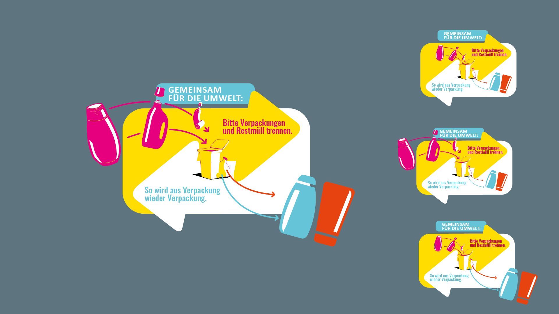 Um die Recyclingquote bei Plastikverpackungen zu erhöhen, wurden Kunden der Mitgliedsunternehmen aufgerufen, Plastikverpackungen richtig zu trennen. Mit einer maximal flexiblen und modularen Kampagne, die rund um den Global Recycling Day sowie den World Clenaup Day, eingesetzt wurde.